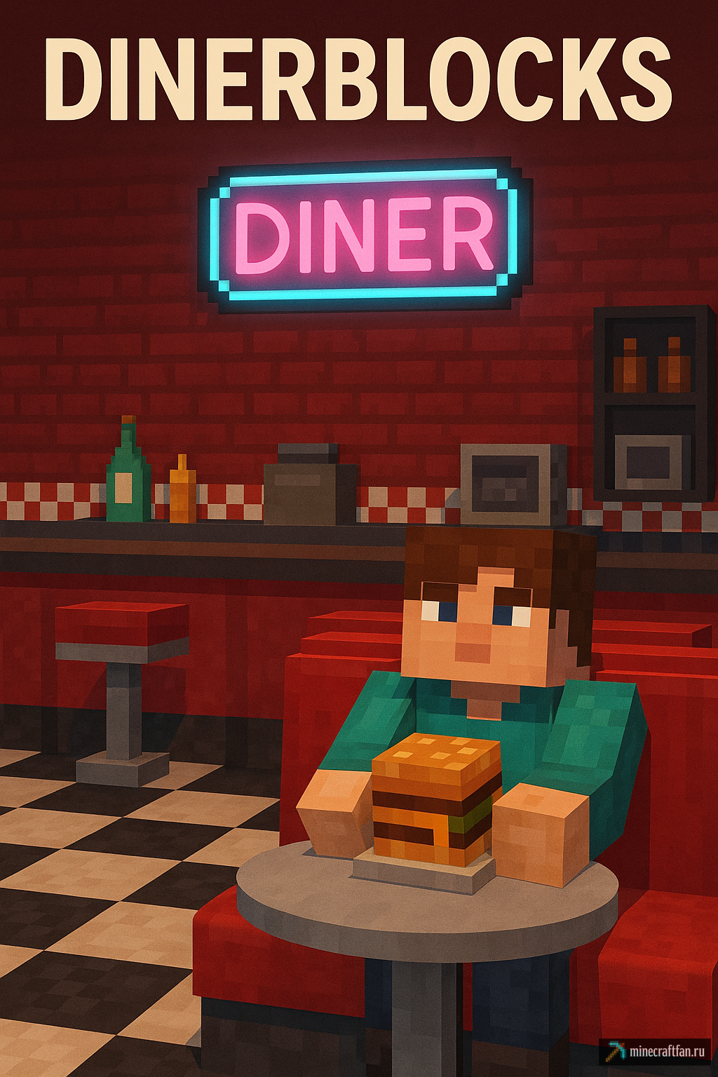 DinerBlocks — мод для Майнкрафт 1.20.1, добавляющий стильную мебель, плитку и декор для создания классических американск...