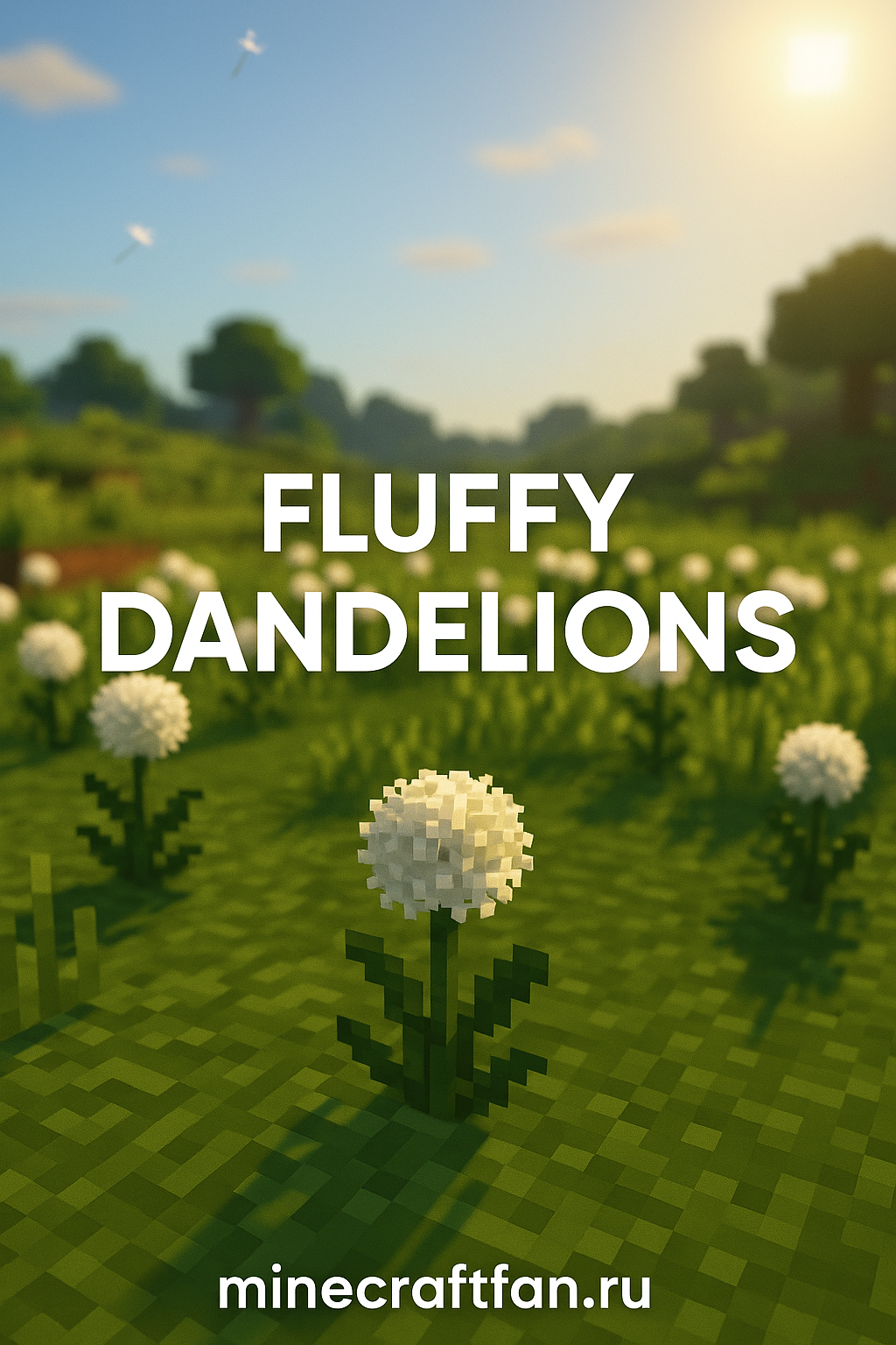 Fluffy Dandelions для Minecraft 1.20.1 — декоративный мод, добавляющий пушистые одуванчики и новые варианты растительнос...