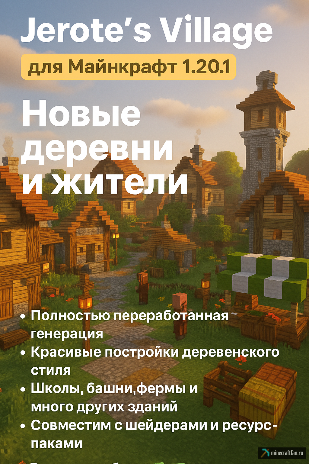 Jerote’s Village — мод, который полностью преображает деревни в Майнкрафте. Улучшенная генерация, уникальные постройки и...