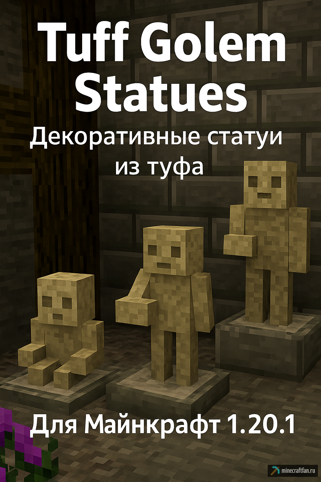 Tuff Golem Statues — мод, добавляющий красивые статуи из туфа, вдохновлённые мобом Tuff Golem из голосования. Идеально п...