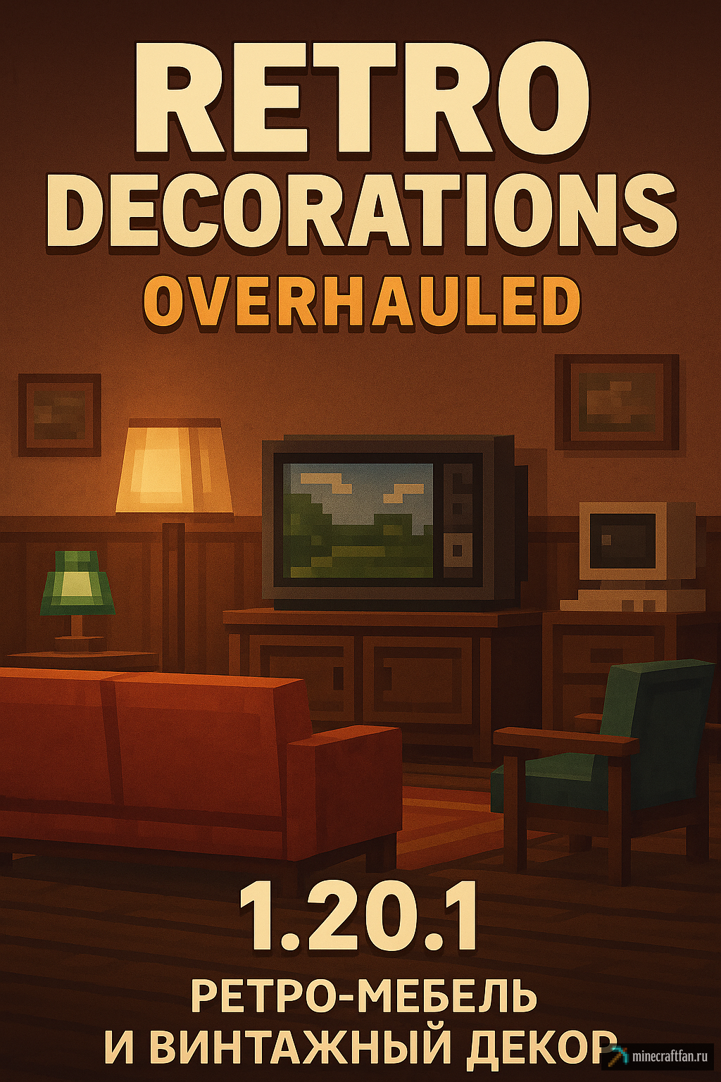 Retro Decorations Overhauled — мод для Майнкрафт 1.20.1, добавляющий стильную мебель и винтажный интерьер 20 века. Украс...