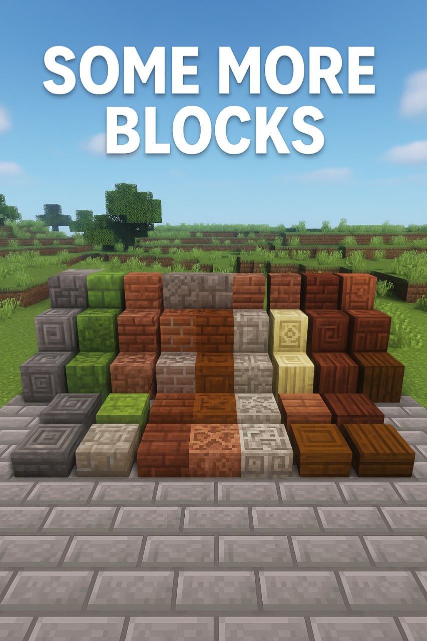 Some More Blocks добавляет более 500 декоративных блоков, совместимых с режимом выживания: кирпичи, резное дерево, камен...