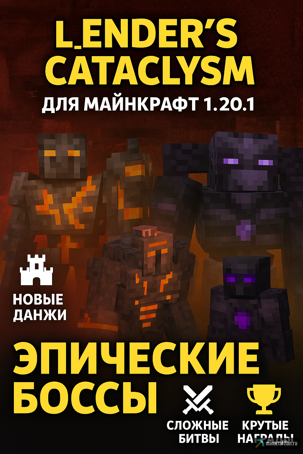 L_Ender’s Cataclysm — это масштабный мод на сложных боссов, уникальные структуры, крутые награды и битвы, которые запомн...