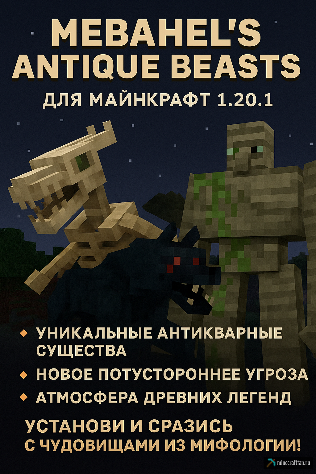 Mebahel's Antique Beasts — мод на мобов, добавляющий в Майнкрафт антикварных чудовищ, мифических зверей и атмосферу древ...