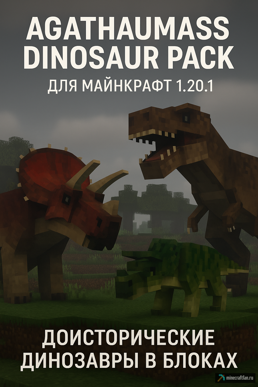 Agathaumass Dinosaur Pack — мод, добавляющий в Майнкрафт детализированных доисторических динозавров с анимациями и повед...