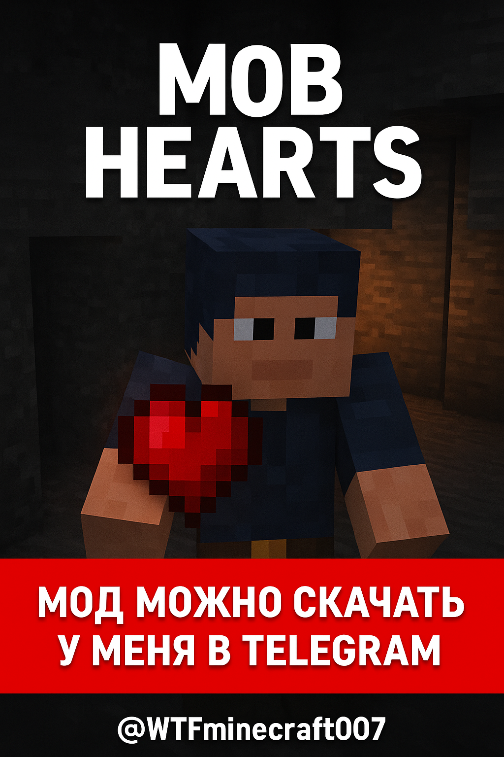 Mob Hearts добавляет сердца мобов в Minecraft. Убивай врагов, получай их сердца и используй их силу для бафов и зелий!