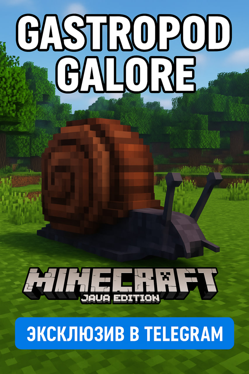 Gastropod Galore добавляет более 20 видов улиток в Minecraft — от декоративных до гигантских боевых слизней. Приручи сво...