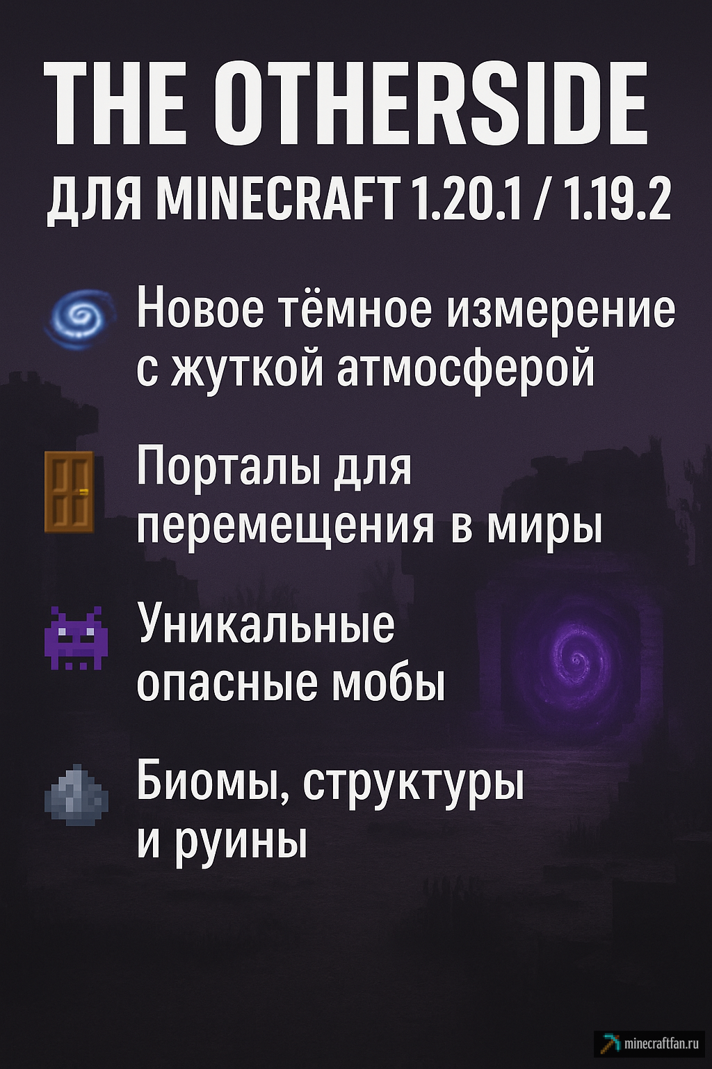 The Otherside — мистический мод, добавляющий новое измерение с жуткой атмосферой, уникальными мобами, порталами и биомам...