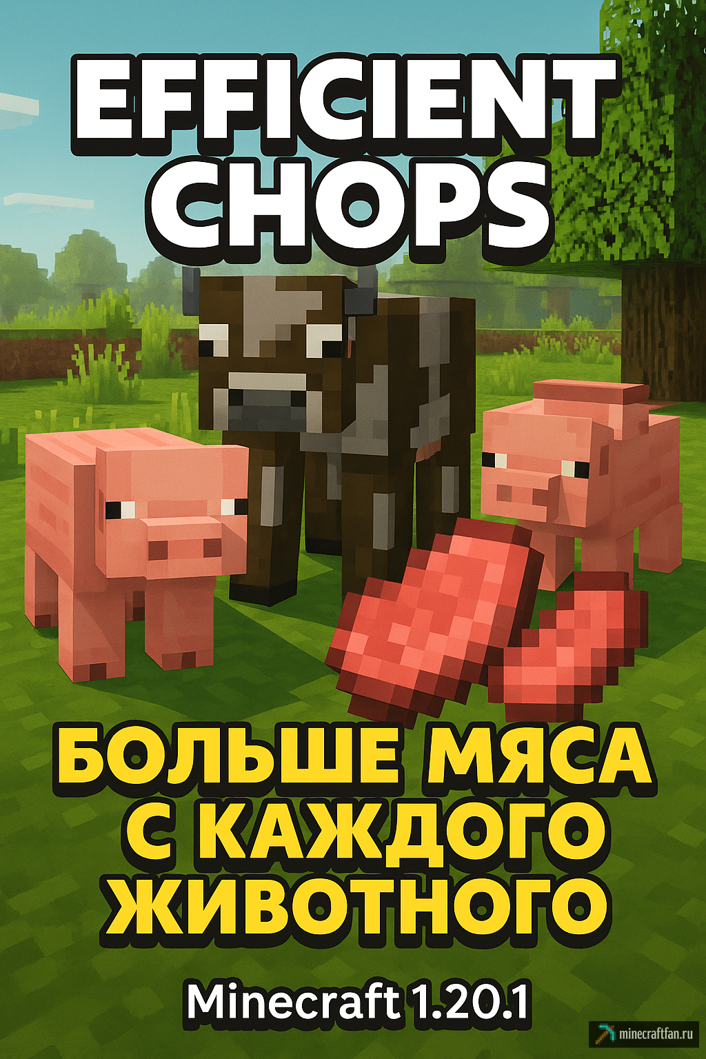 Efficient Chops — это простой, но полезный мод, увеличивающий количество мяса, которое выпадает с животных, в зависимост...