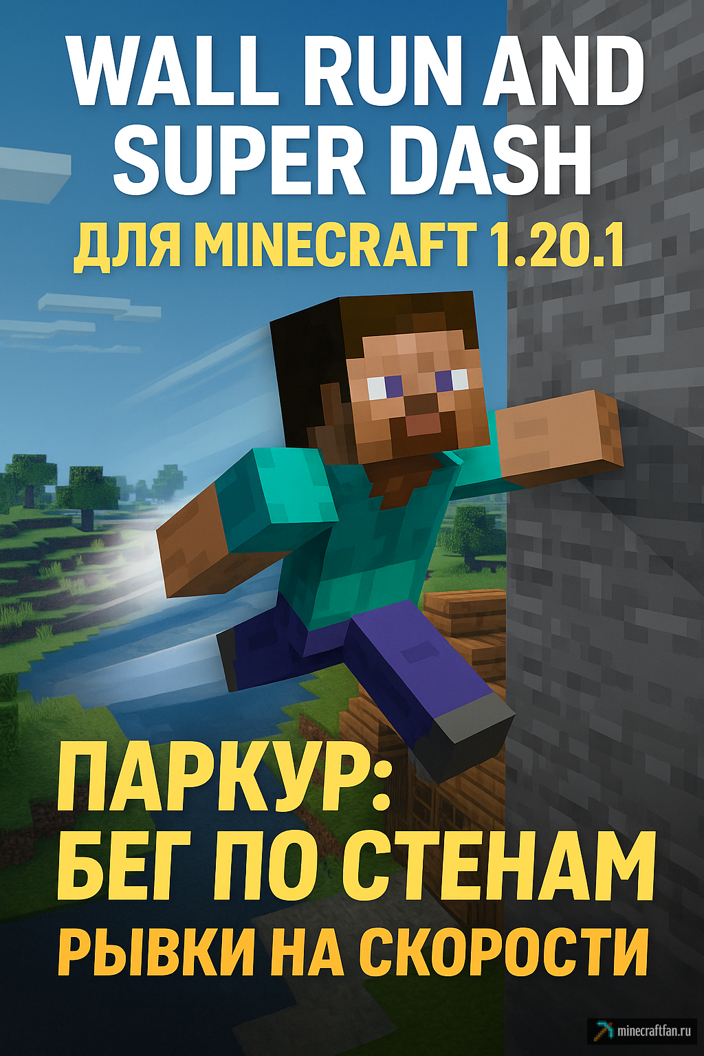 Wall Run and Super Dash — динамичный мод, добавляющий в Майнкрафт паркур-механику: бег по стенам, ускорения и вертикальн...