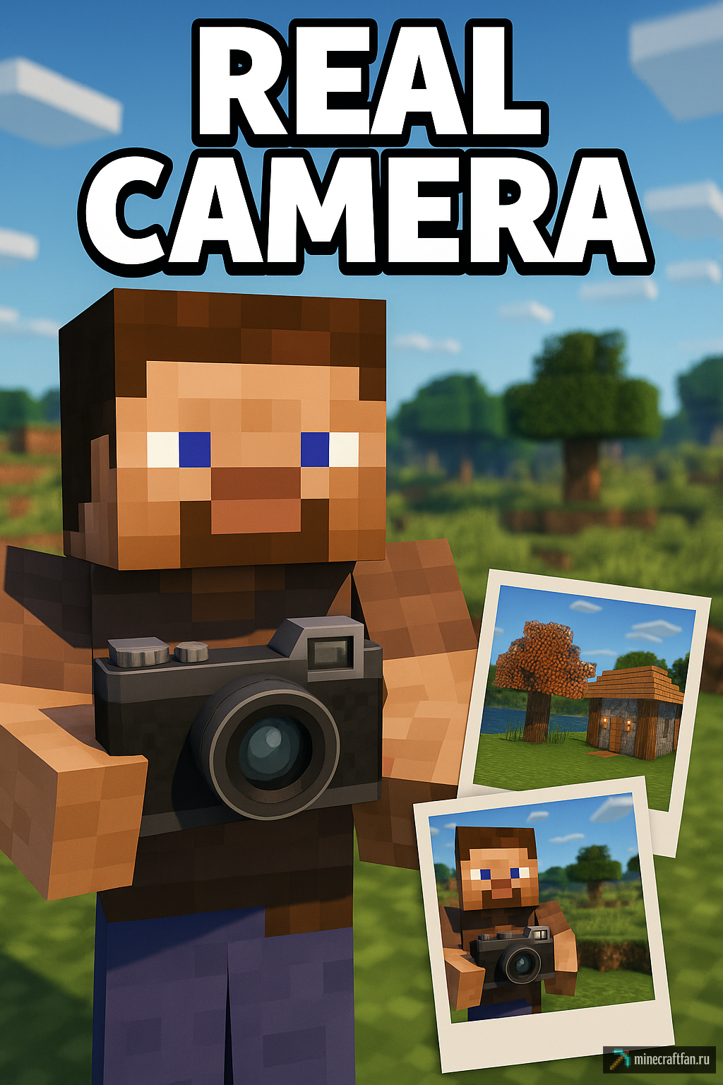 Real Camera — мод для Майнкрафт 1.20.1, добавляющий настоящую фотокамеру, объективы и плёнку. Делай снимки, храни их в а...
