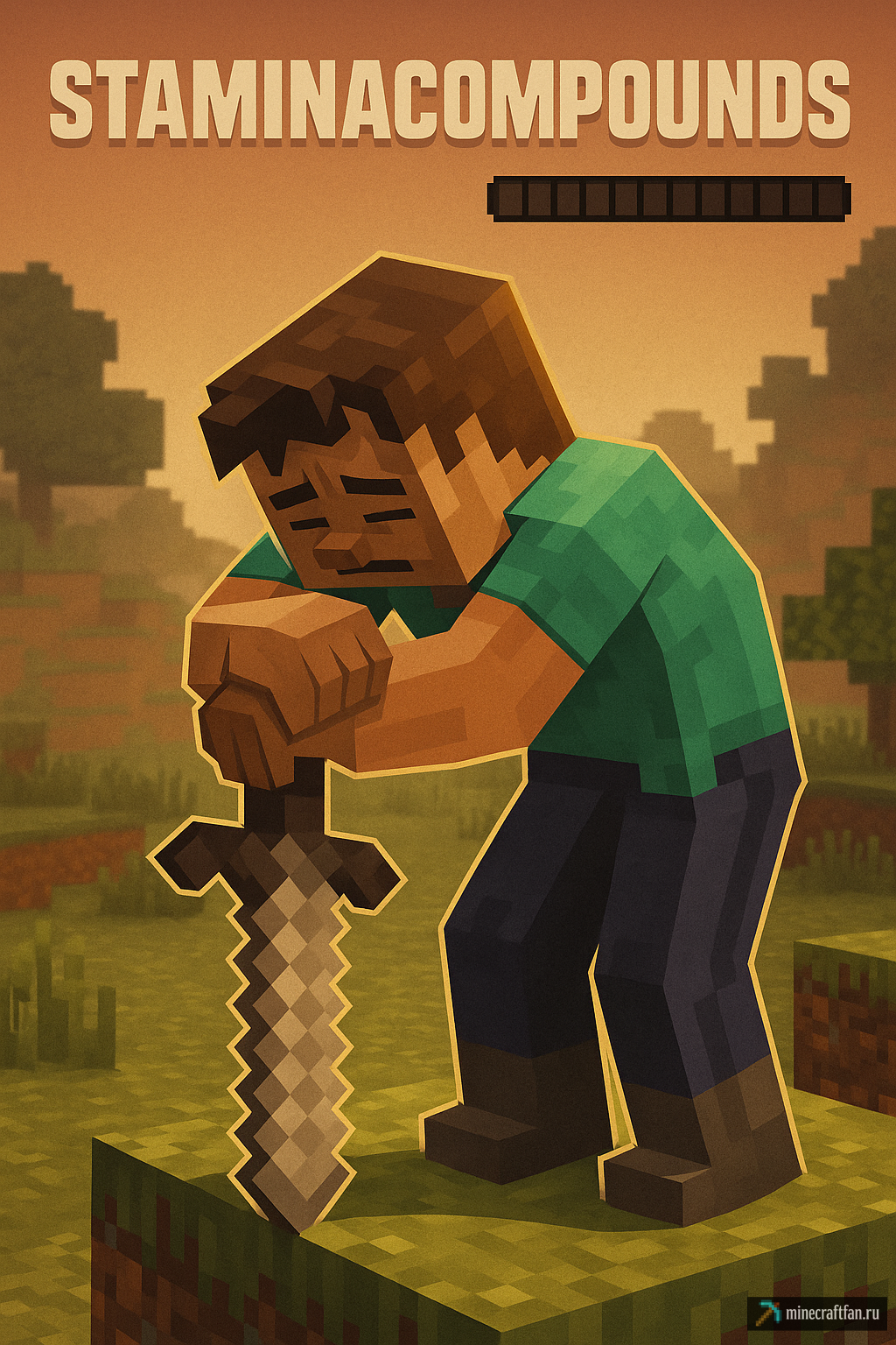 StaminaCompounds — мод для Майнкрафт 1.20.1, добавляющий систему стамины: бег, прыжки и атаки теперь расходуют энергию,...