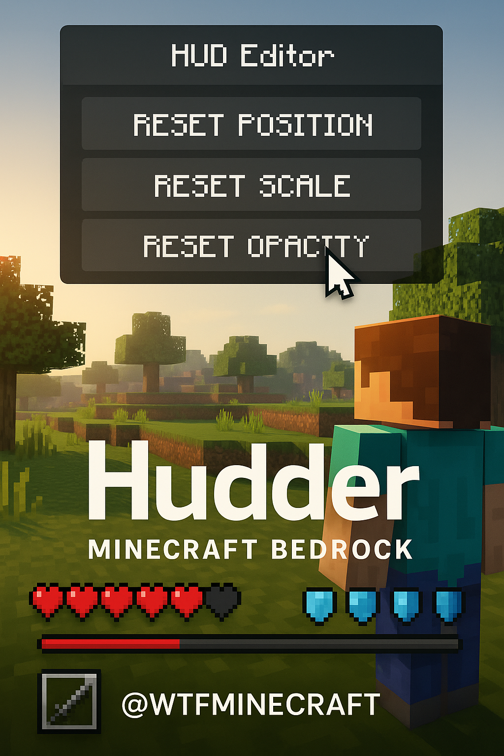 Hudder позволяет изменять и перемещать элементы интерфейса Minecraft, добавлять новые индикаторы и улучшать HUD. Максиму...