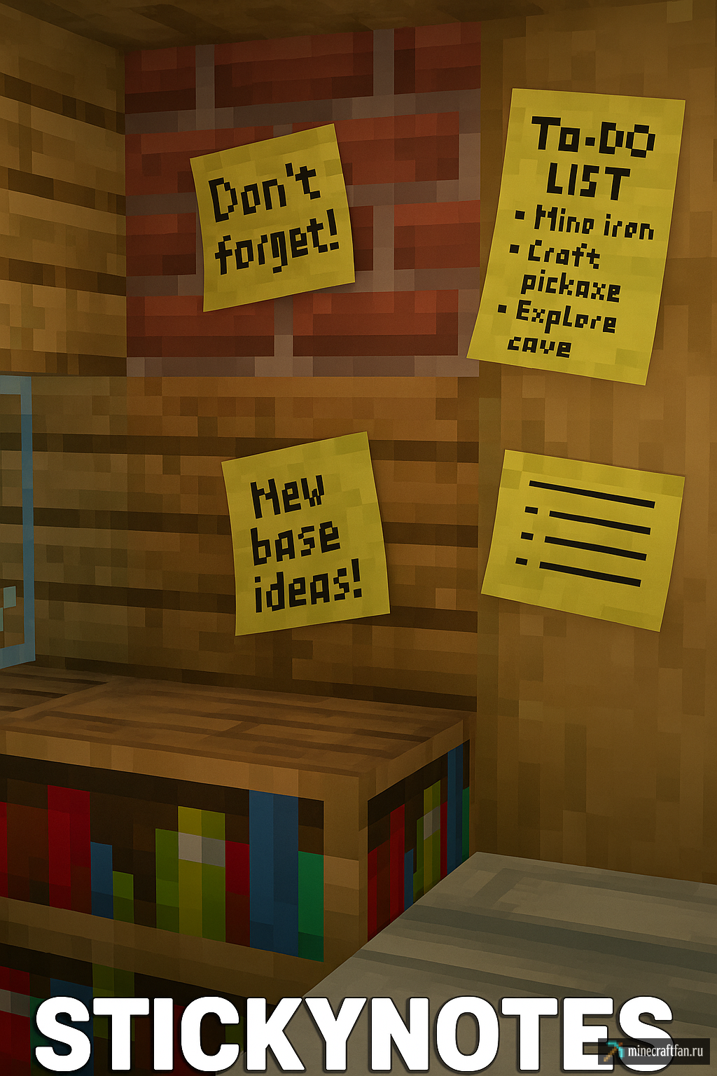 Мод добавляет удобные липкие заметки, которые можно размещать на блоках и использовать для пометок, списков дел и подска...