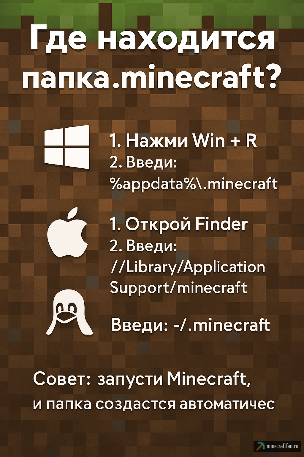 Как найти папку .minecraft — инструкция для всех систем