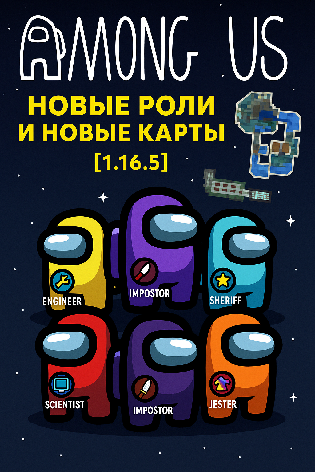 Скачайте карту Амонг Ас Майнкрафт — полноценная Among Us карта для Minecraft Java с ролями, заданиями и саботажами. Рабо...