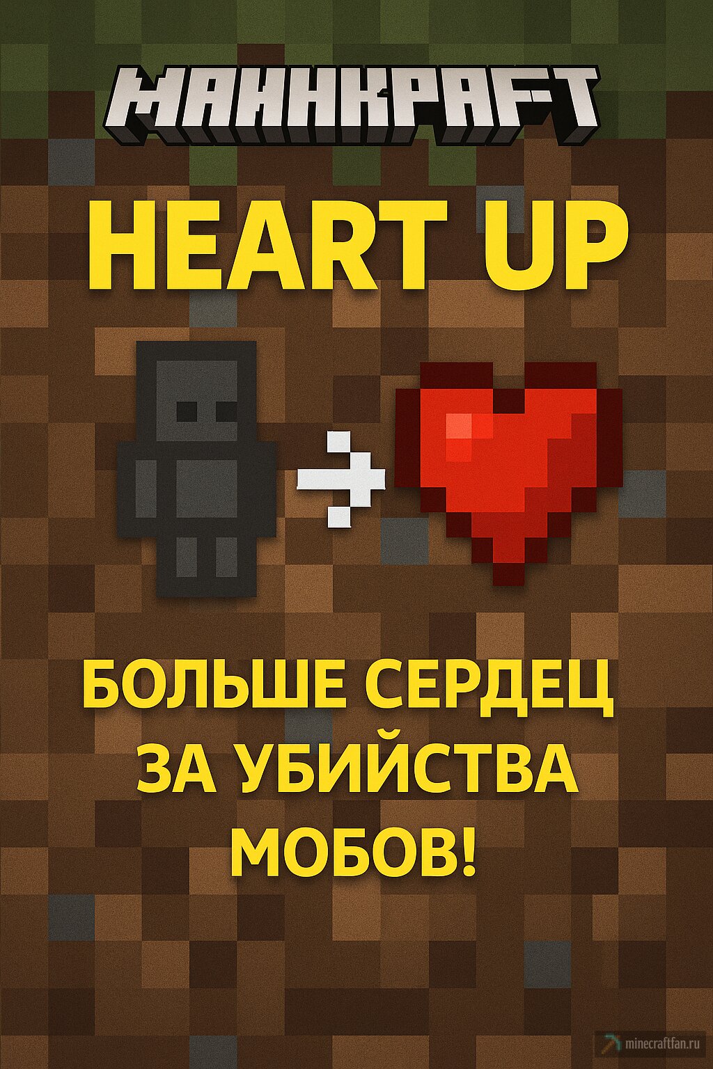 Heart Up — это простой, но увлекательный мод, который позволяет увеличивать здоровье персонажа, убивая враждебных мобов....