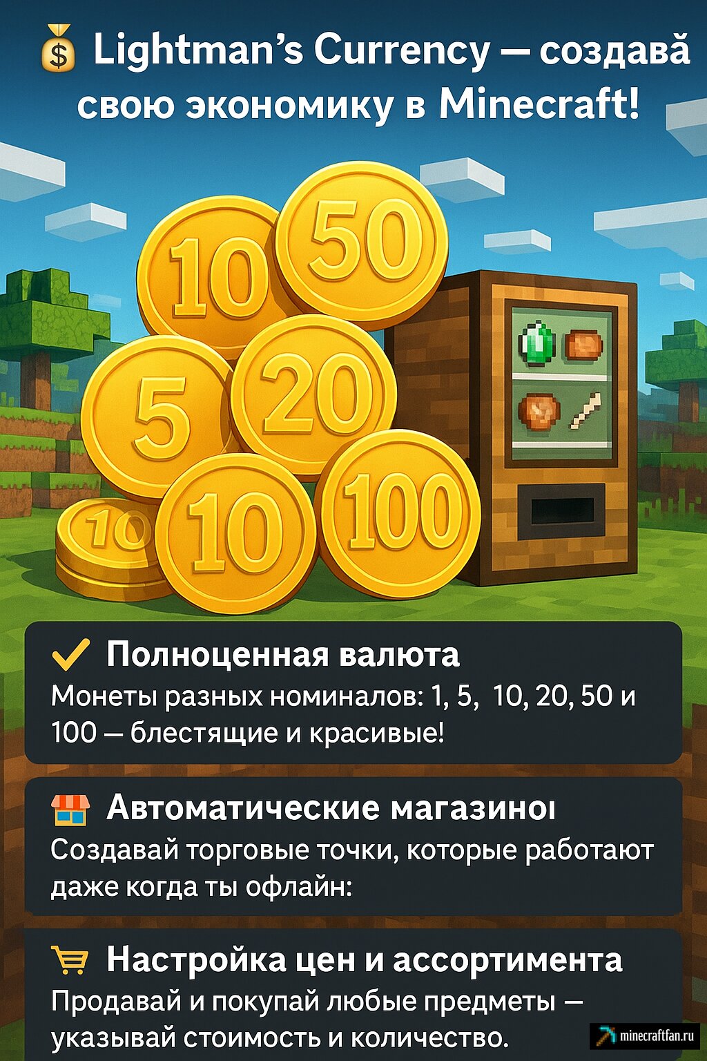 🪙 Скачать мод Lightman's Currency для Minecraft 1.20.4 / 1.20.1 / 1.19.2 — валюта, магазины и экономика в выживании! Li...