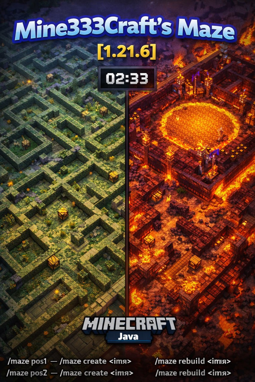 Mine333Craft’s Maze — мод для создания лабиринтов в Майнкрафте 1.20.1. Настраиваемые зоны, таймеры, обновление и мини-иг...