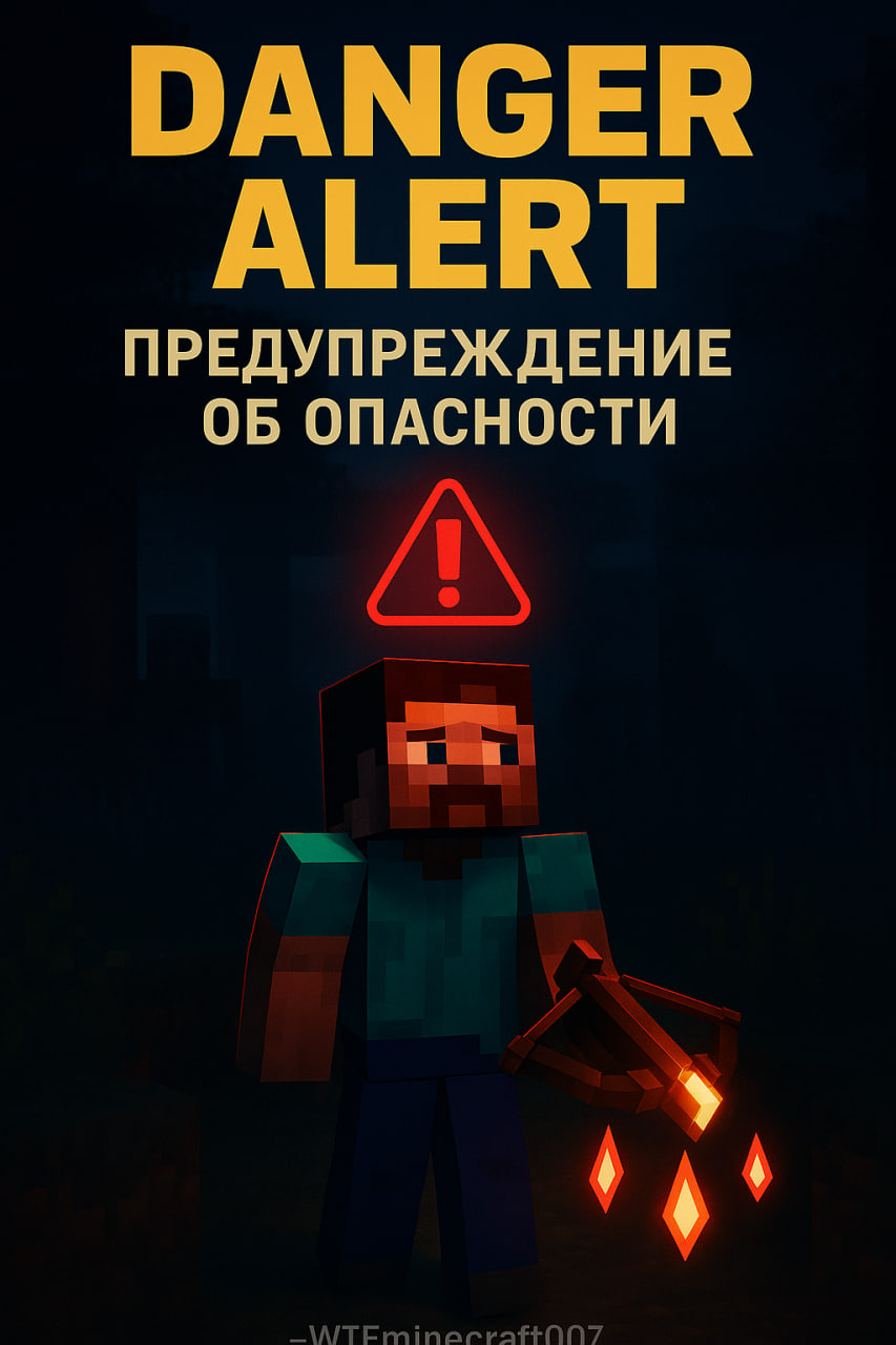 Danger Alert показывает предупреждение и направление угрозы при появлении опасных мобов в Minecraft Java 1.21.x. Идеальн...