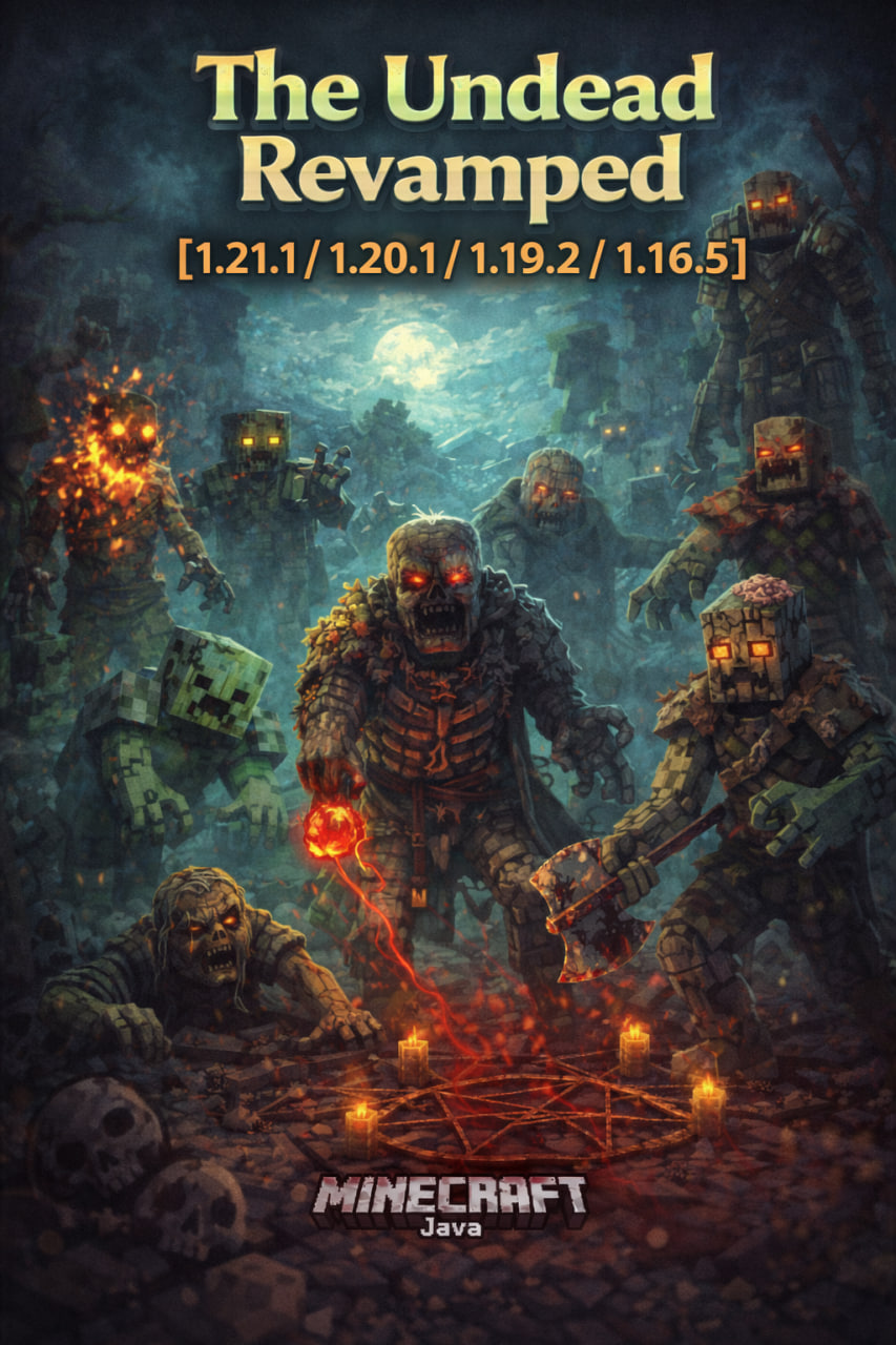 Undead Riders для Minecraft 1.21.11 — это небольшой, но заметный мод, который добавляет в мир игры опасных зомби и скеле...