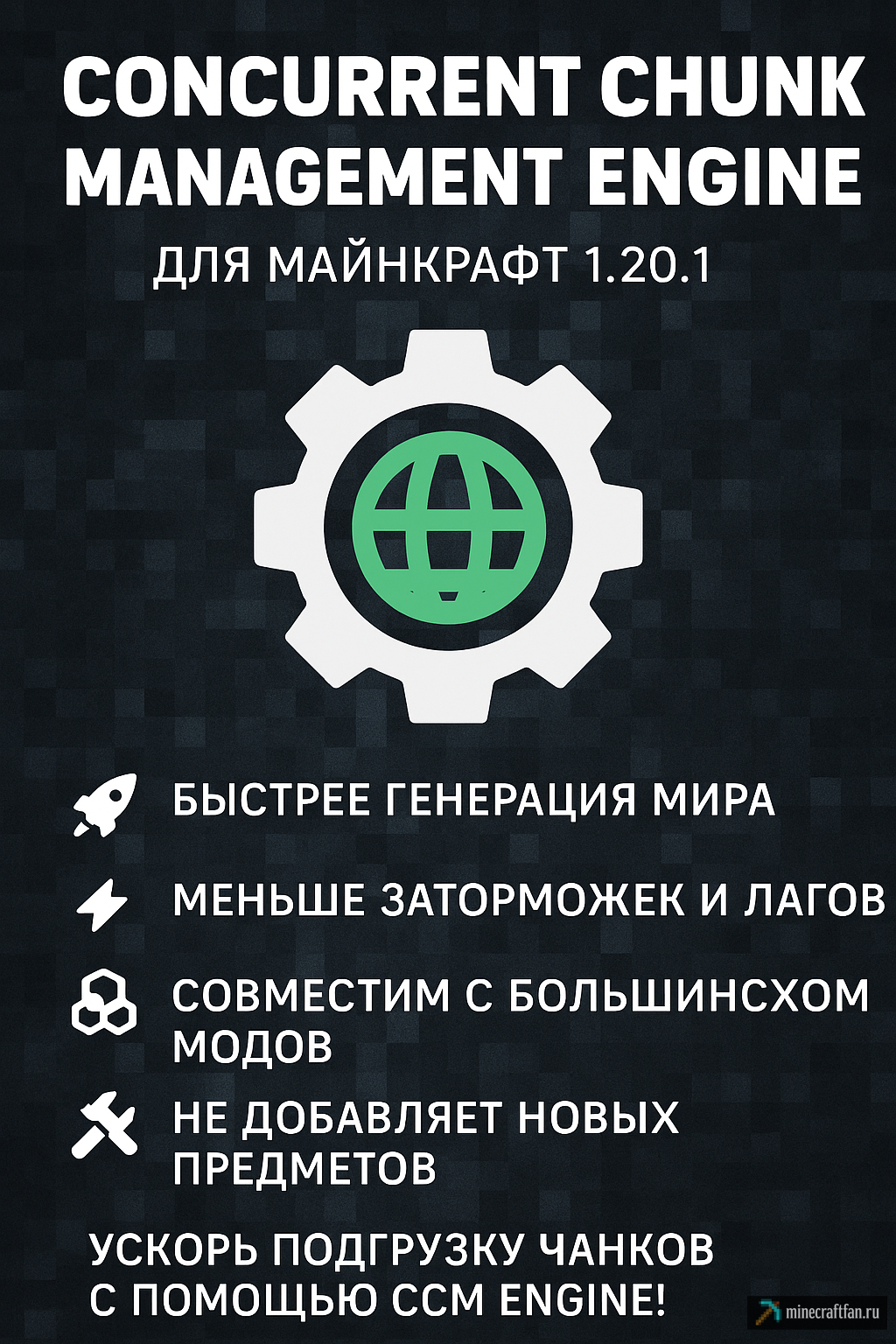 Concurrent Chunk Management Engine — технический мод для оптимизации генерации и загрузки чанков. Улучшает производитель...