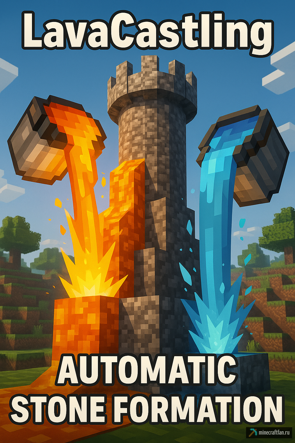 LavaCastling — это мод для Майнкрафт 1.20.1, который позволяет мгновенно возводить прочные стены и башни с помощью лавы...