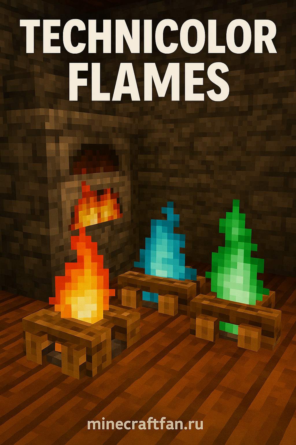 Technicolor Flames для Minecraft 1.20.1 — декоративный мод, добавляющий разноцветные варианты огня. Теперь можно создава...