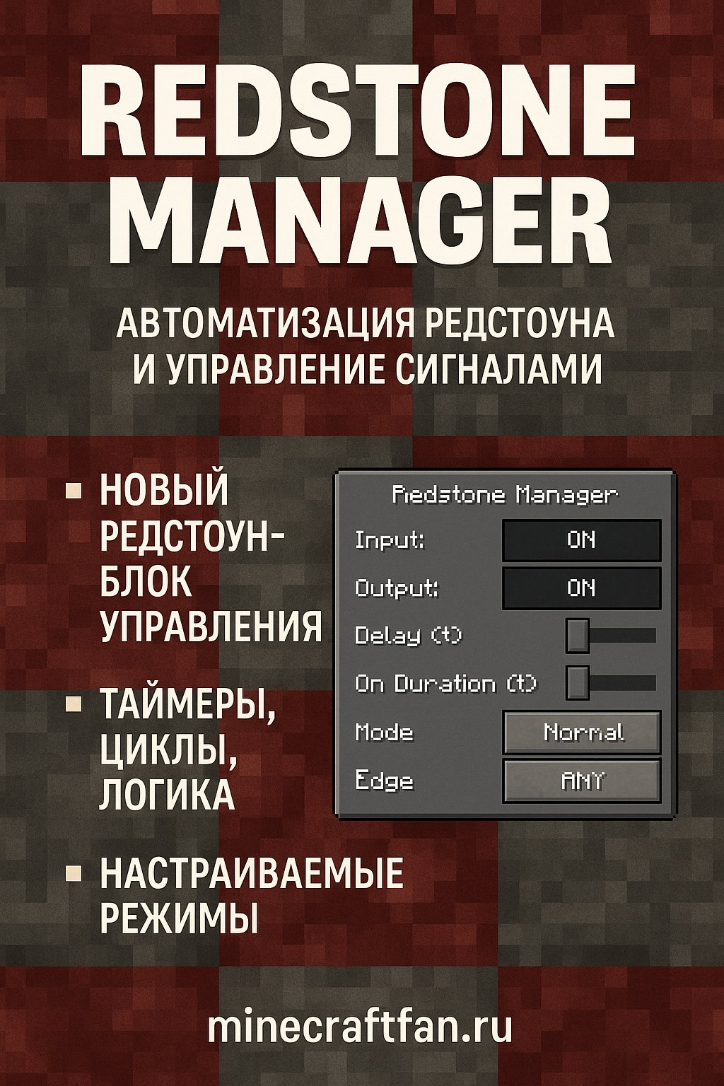 Скачать мод Redstone Manager для Minecraft 1.20.1 — гибкое управление редстоуном, таймеры, циклы, логика и автоматизация...