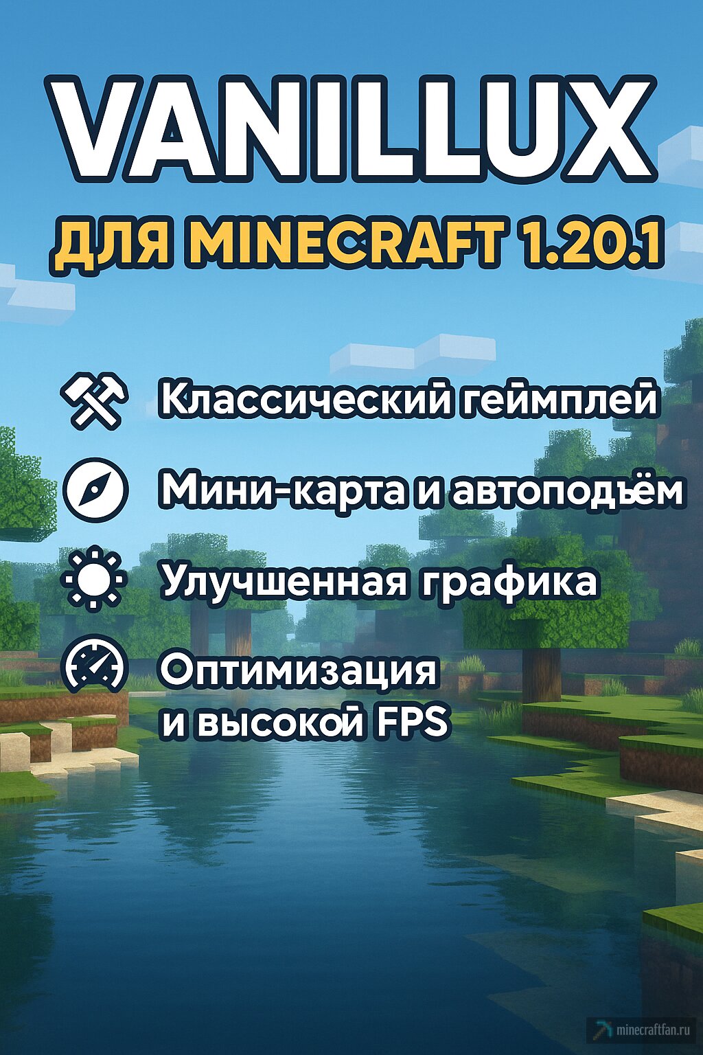 🧱 Скачать модпак Vanillux для Minecraft 1.20.1 — ваниль с улучшениями, без перегруза Vanillux — это лёгкий и стильный м...
