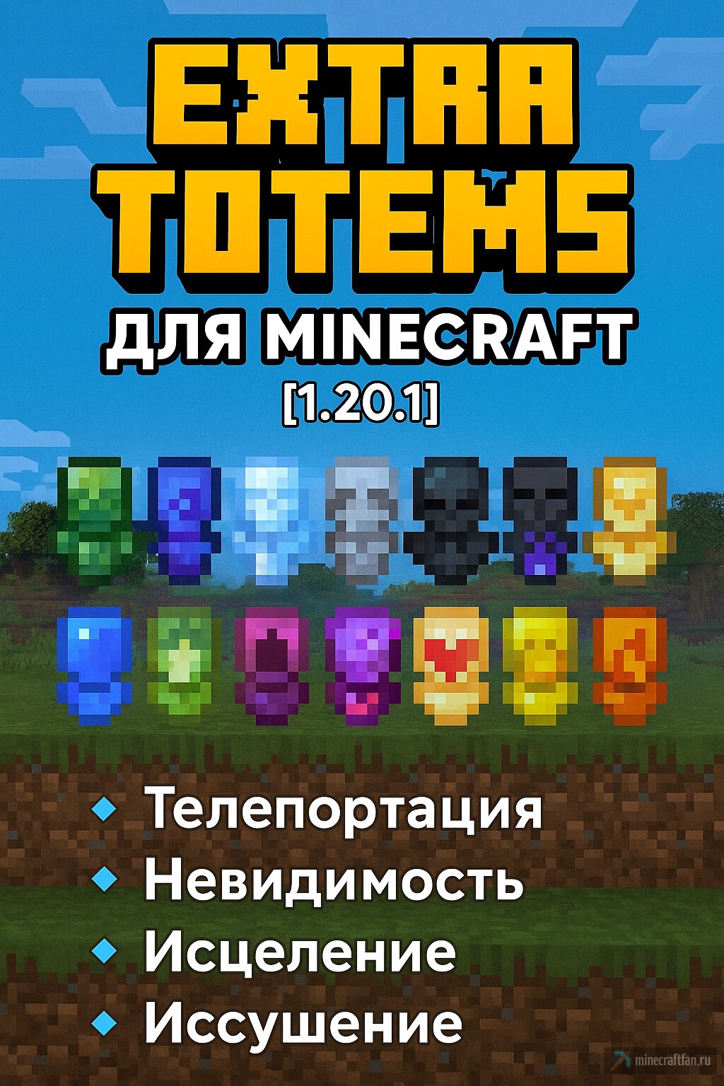 🛡️ Скачать мод Extra Totems для Minecraft 1.20.1 — тотемы с уникальными эффектами Extra Totems — это мод, который добавл...