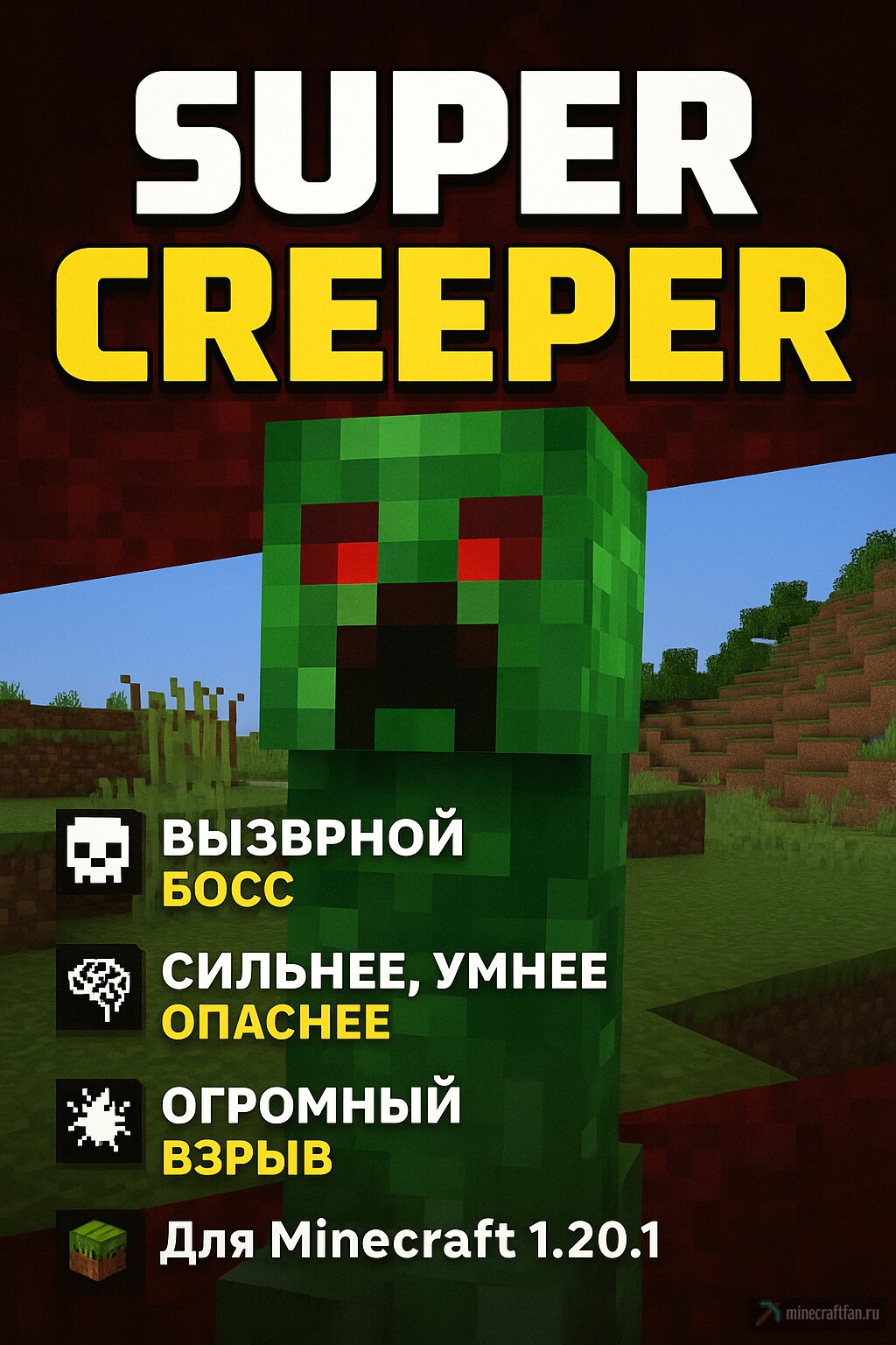 💥 Скачать мод Super Creeper для Minecraft 1.20.1 — взрывной босс и новый кошмар Super Creeper — это мод, который добавл...