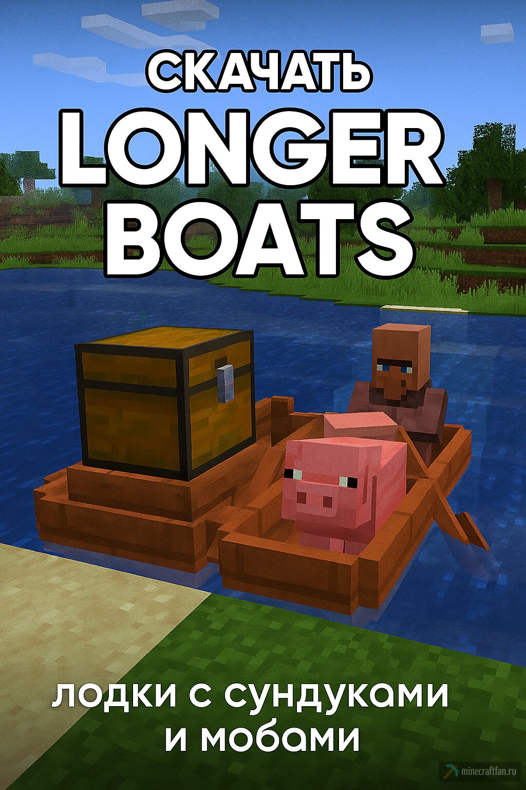 ⛵ Скачать Longer Boats для Minecraft 1.20.1 — лодки с сундуками и мобами Мод Longer Boats расширяет функционал обычных...